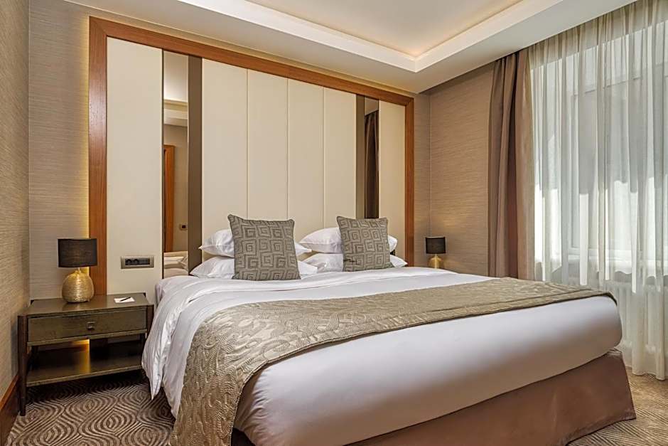 Presidential Suite merges luxury and modern amenities. The room offers outstanding quality materials, contemporary design and breathtaking view overlooking the National Opera House, the Monument of Freedom and the City Park.